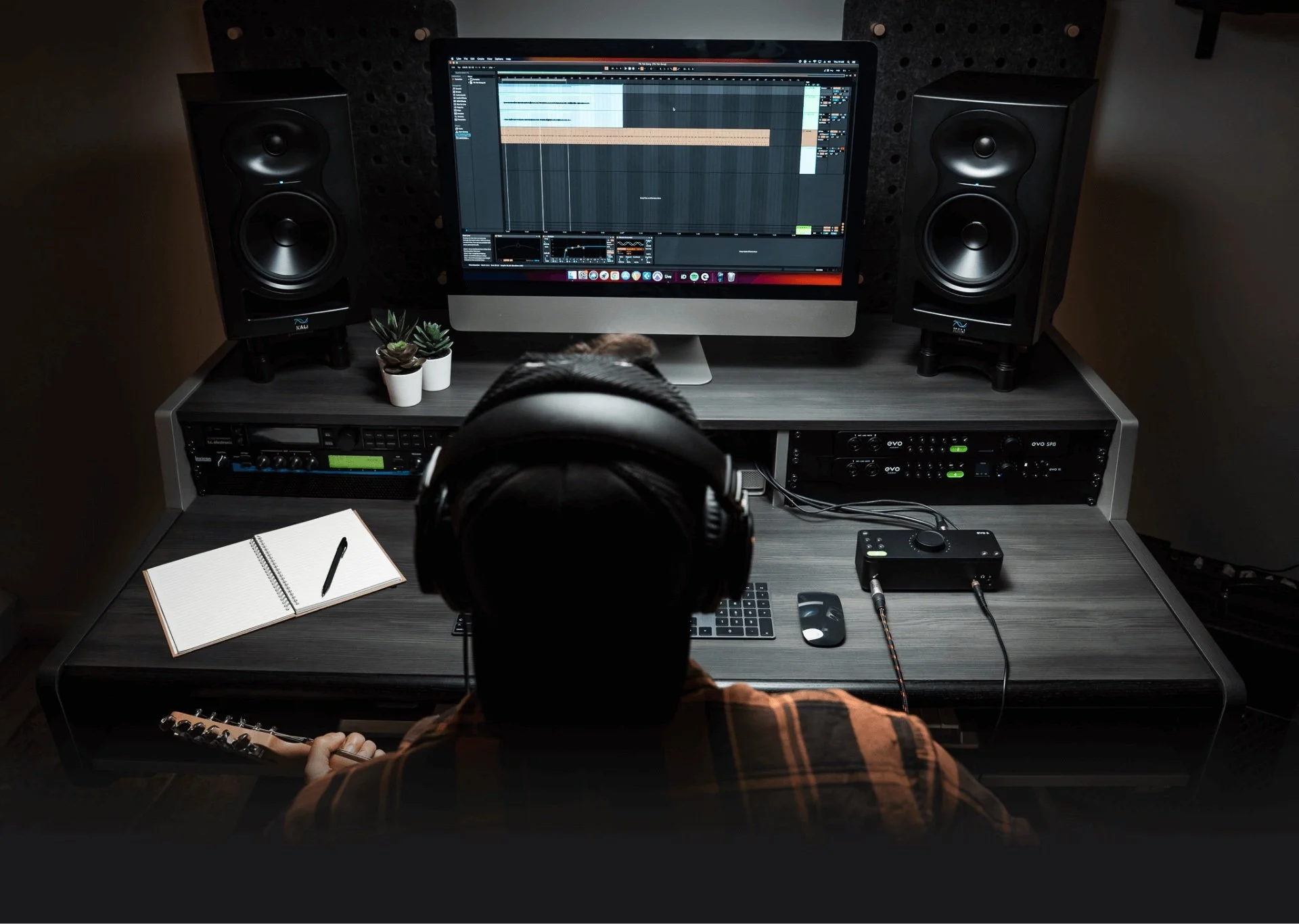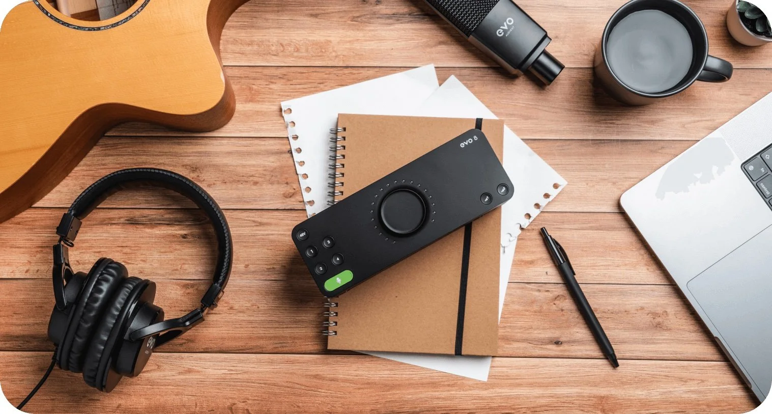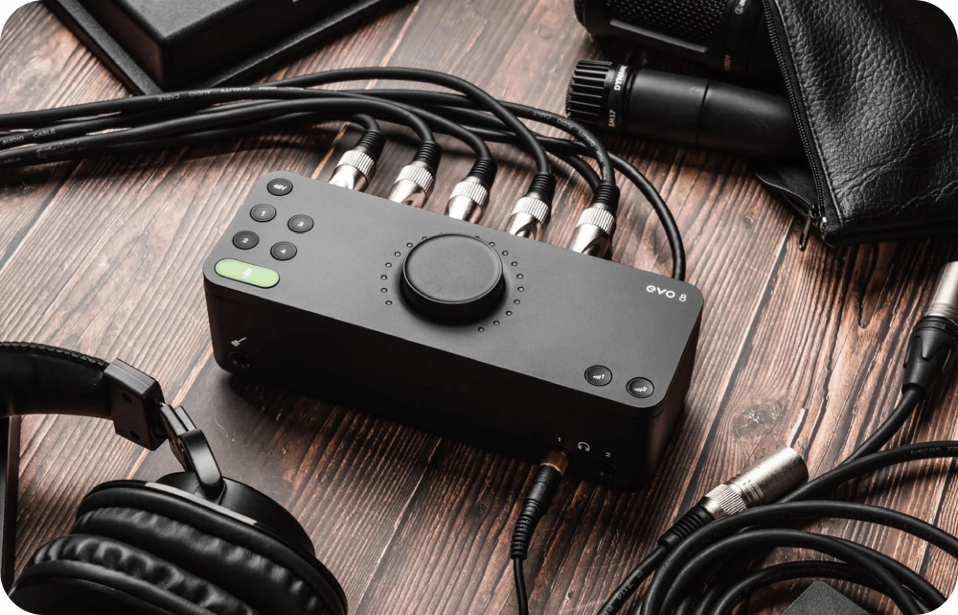 The EVO8 by Audient is a versatile USB audio interface designed for creators who need more connectivity. It features four mic/line inputs with high-performance preamps, a JFET instrument input, and four line outputs, making it ideal for recording multiple sources simultaneously. The EVO8 also includes smart gain technology, which automatically adjusts levels for optimal recording, and loopback functionality for streaming or podcasting. With its intuitive interface, large central control knob, and low-latency monitoring, the EVO8 provides professional-grade audio in a compact, user-friendly package, compatible with both Mac and Windows systems.
